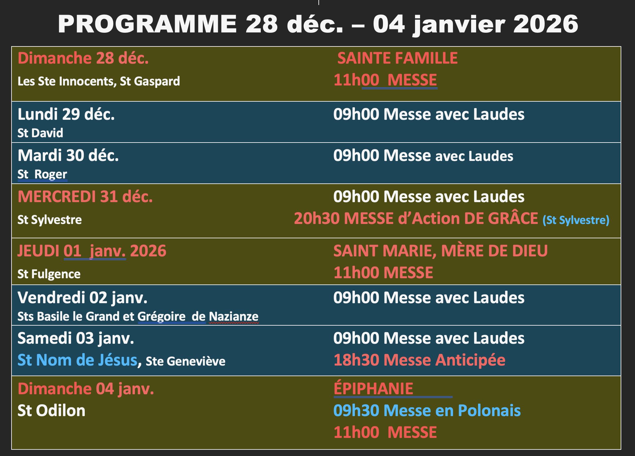 Agenda à Ste Anne du 28 décembre au 4 janvier