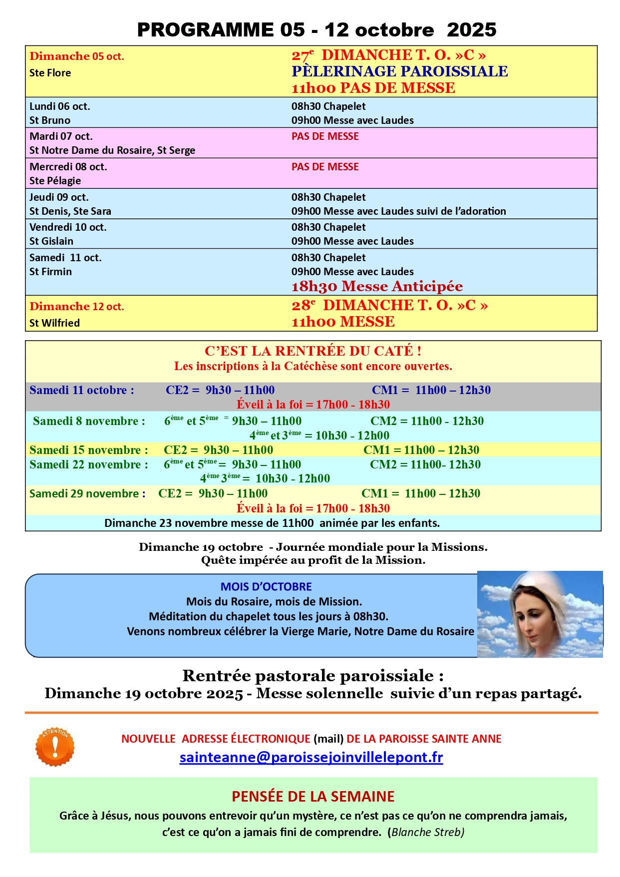 SteAnne change d’adresse courriel …………………. UTILISEZ : sainteanne@paroissejoinvillelepont.fr